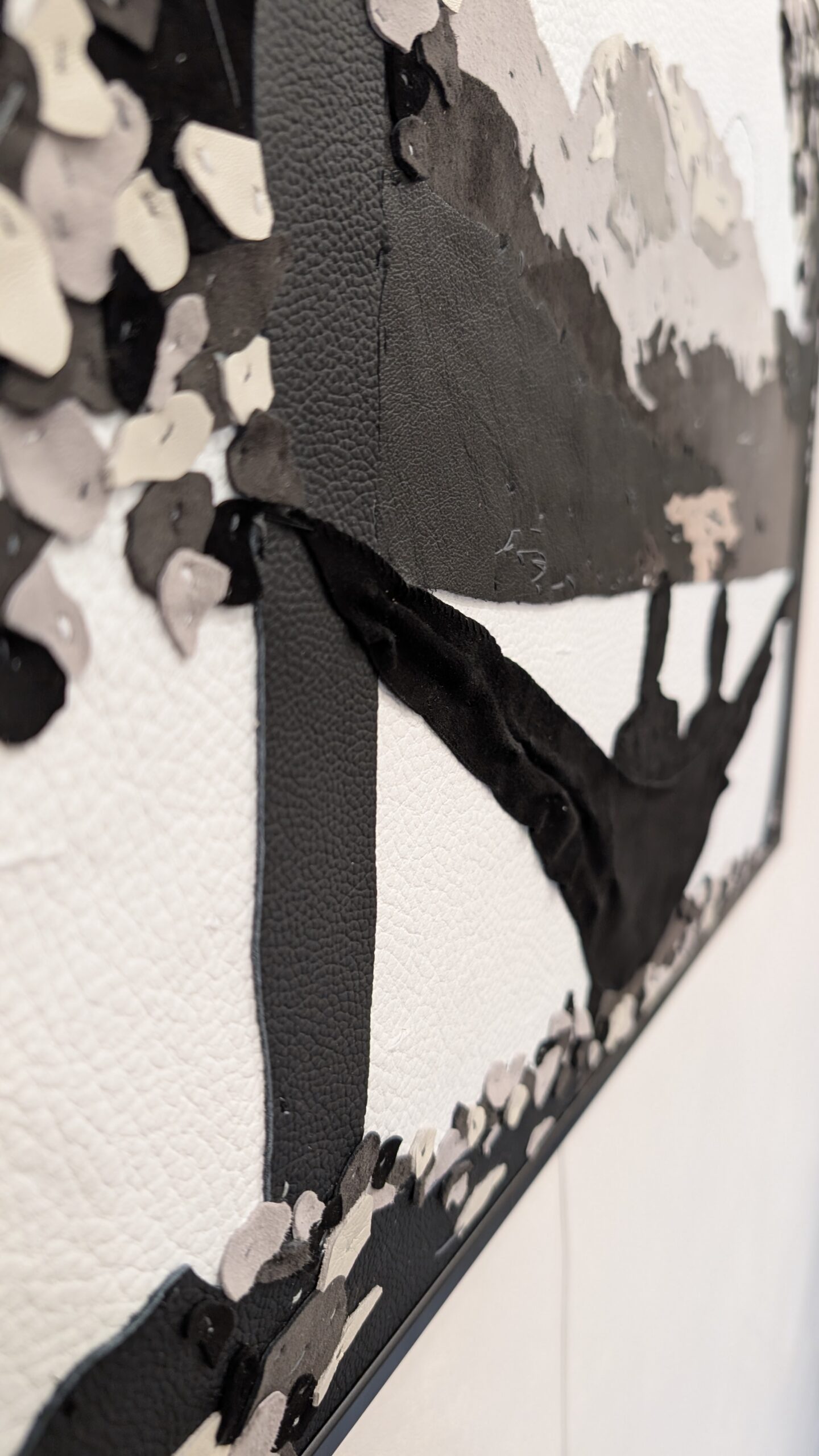 Du cuir de chèvre et de vache de différentes finitions compose ce tableau