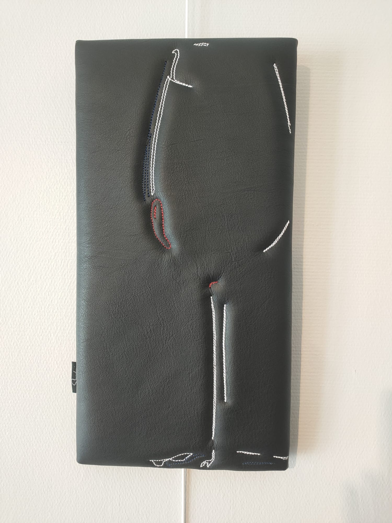 Un seul cuir de bovin compose ce tableau, le dessin est réalisé avec de la couture machine.