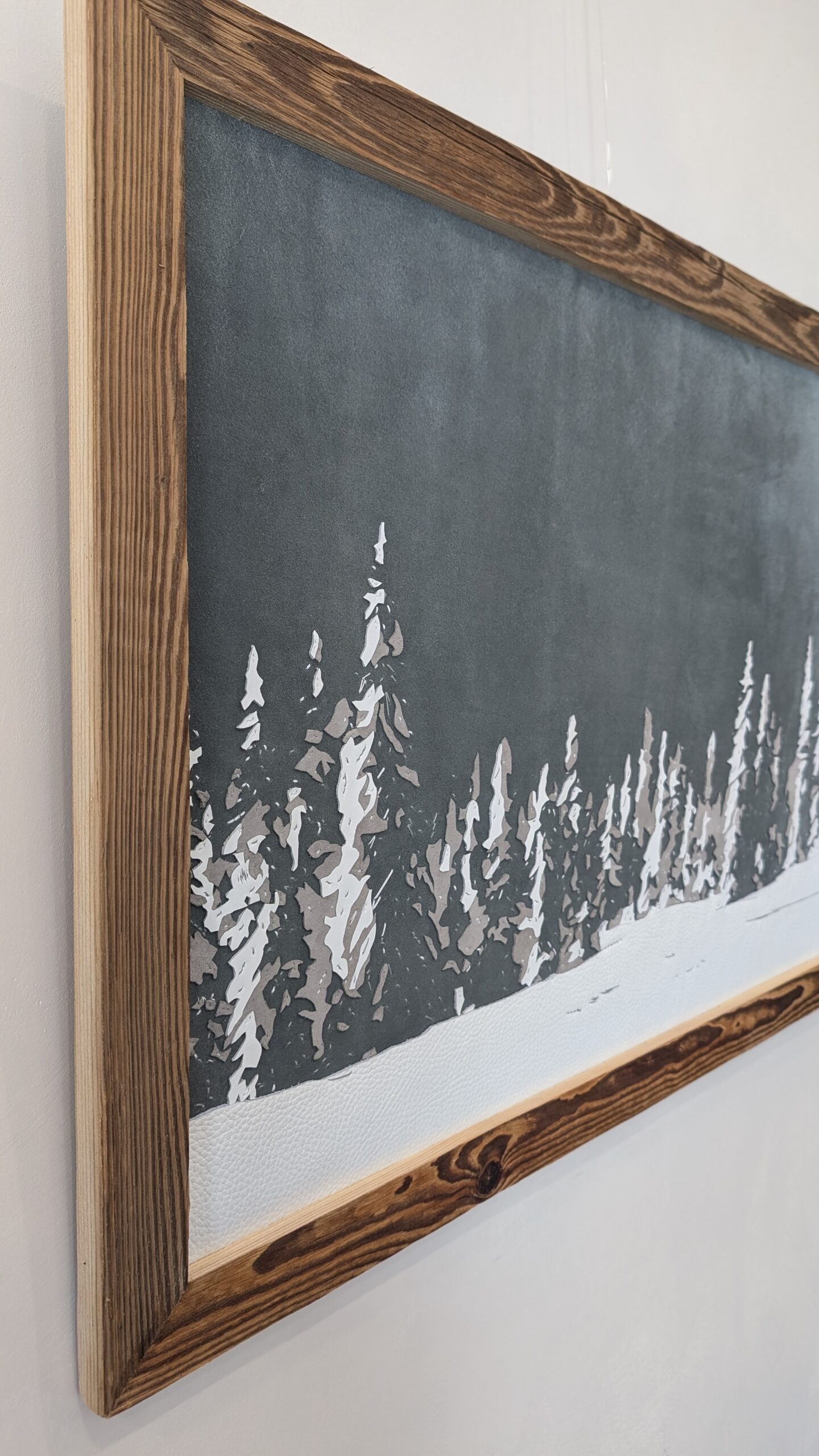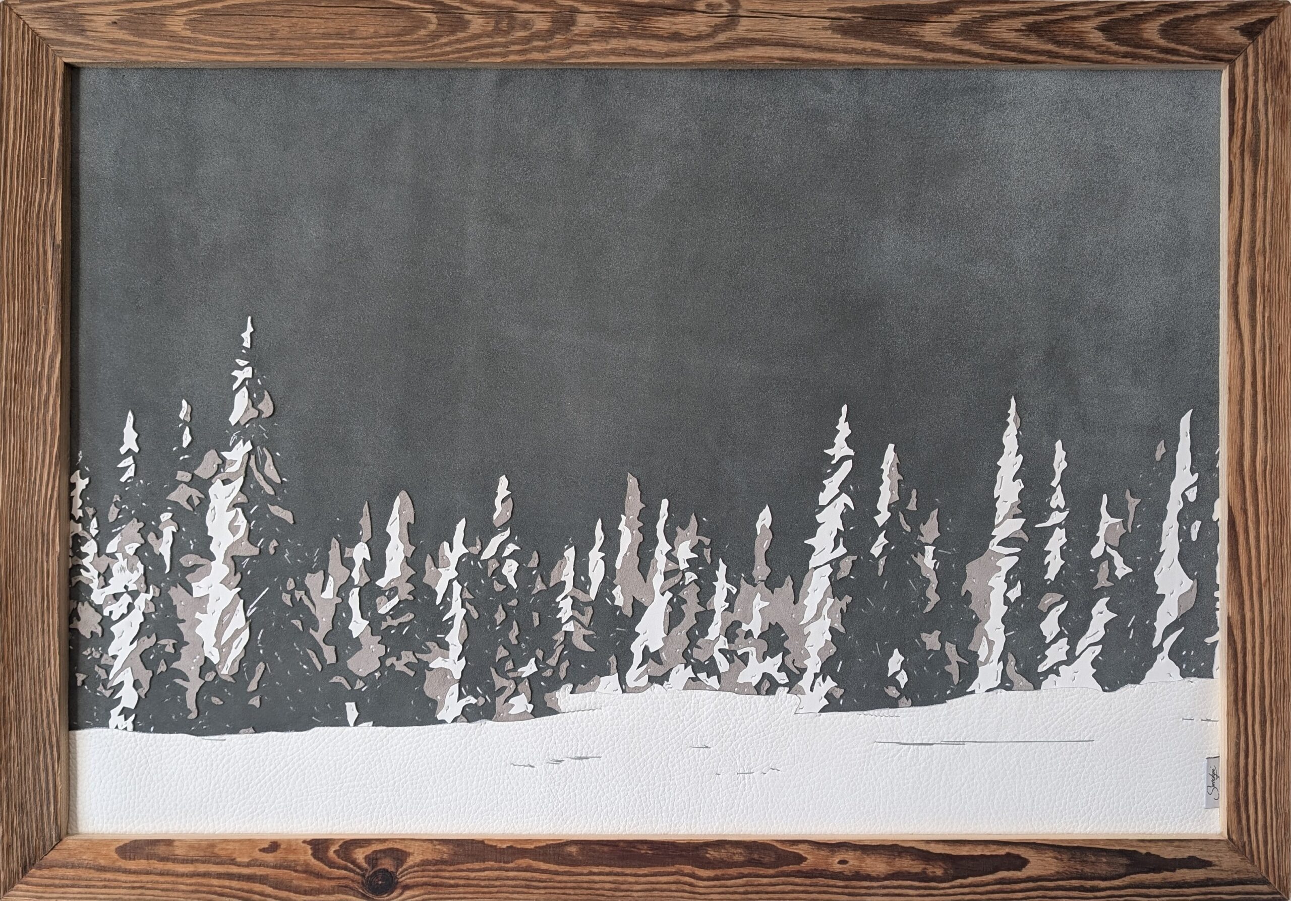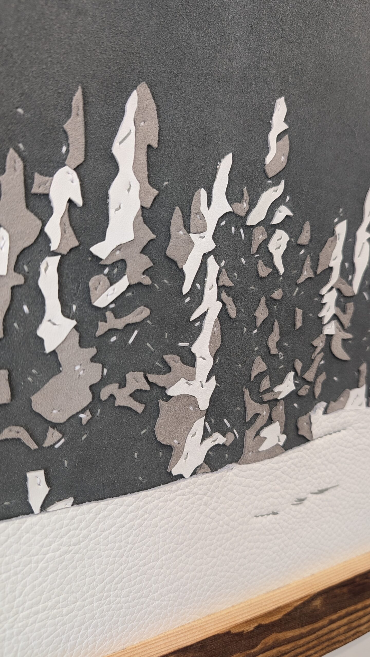 Le tableau est composé uniquement de cuir de bovin en finitions différentes. Le fil est tendu et placé à la main.