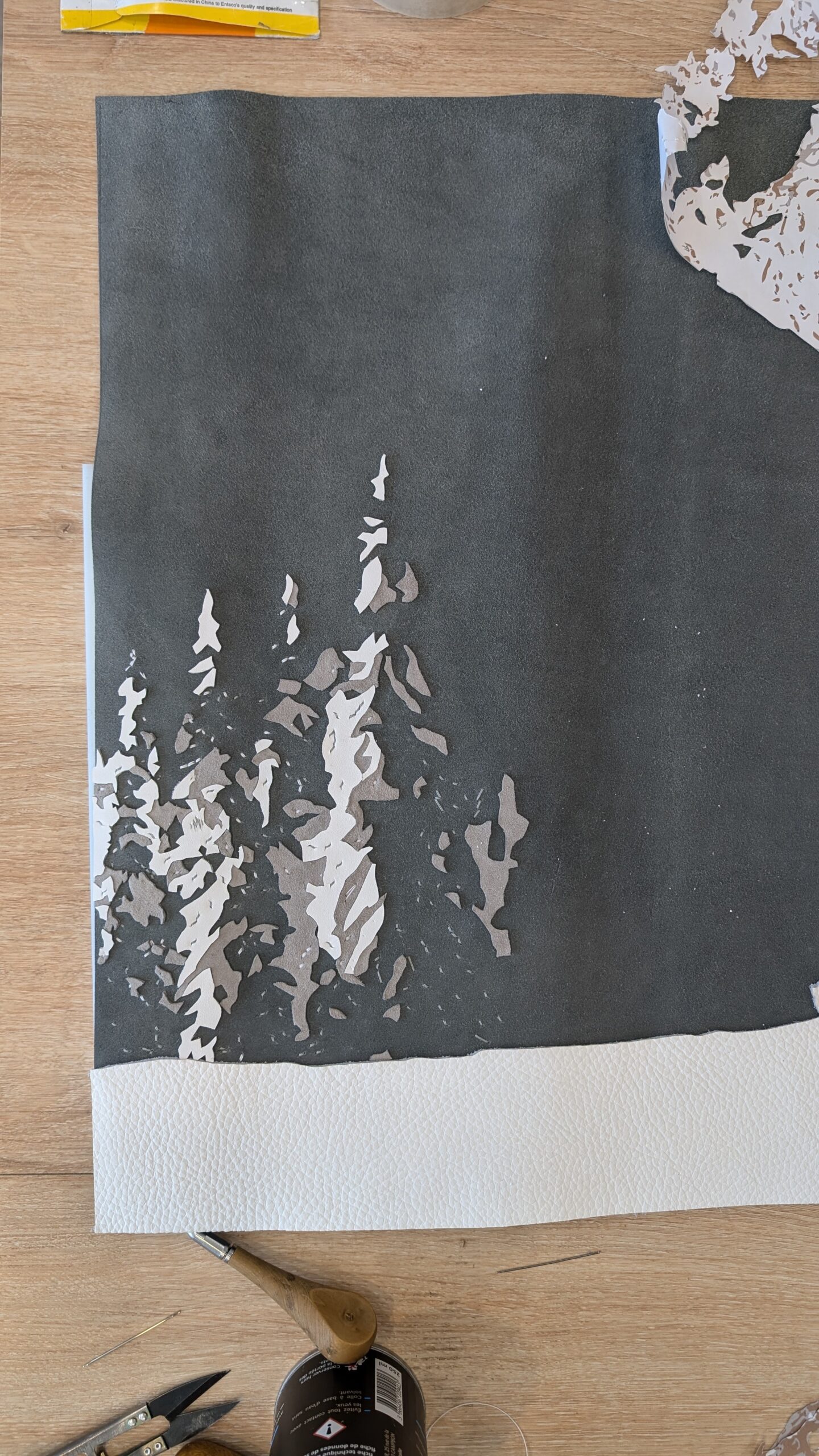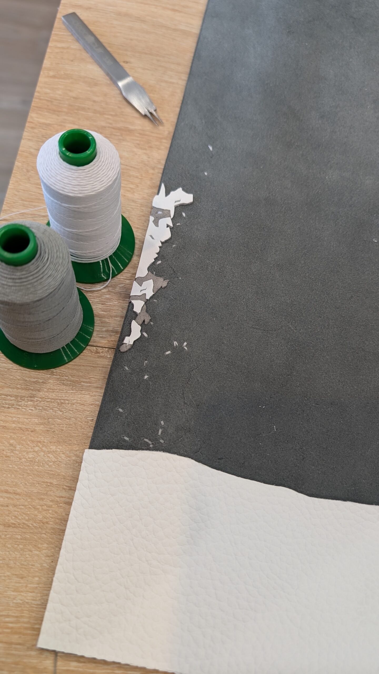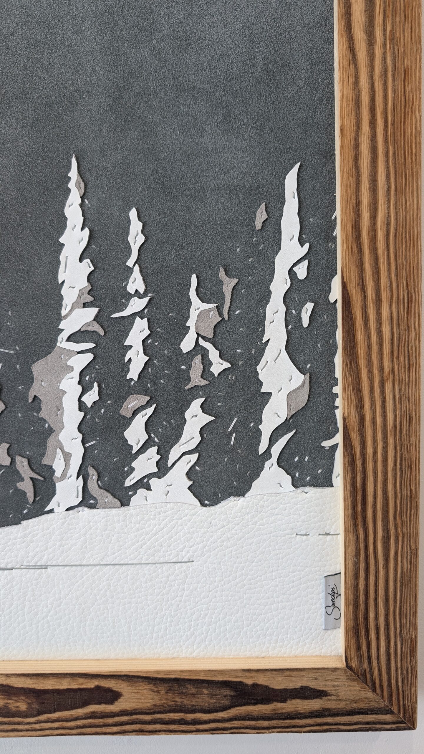 Le tableau est composé uniquement de cuir de bovin en finitions différentes. Le fil est tendu et placé à la main.