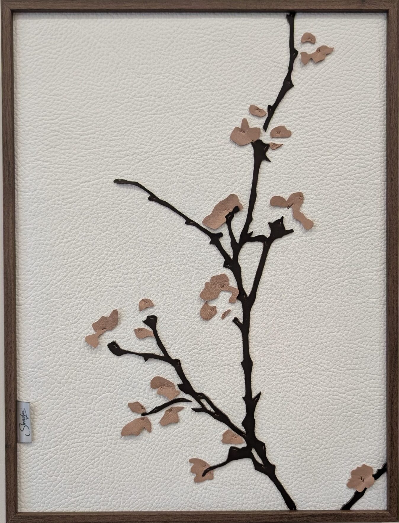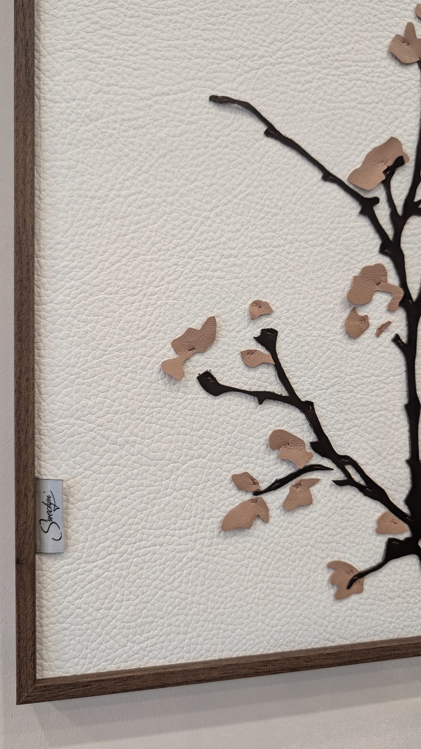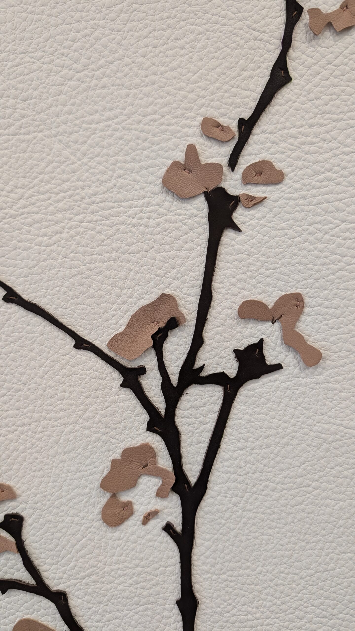 Du cuir de vache et de chèvre compose le tableau. Couture main.